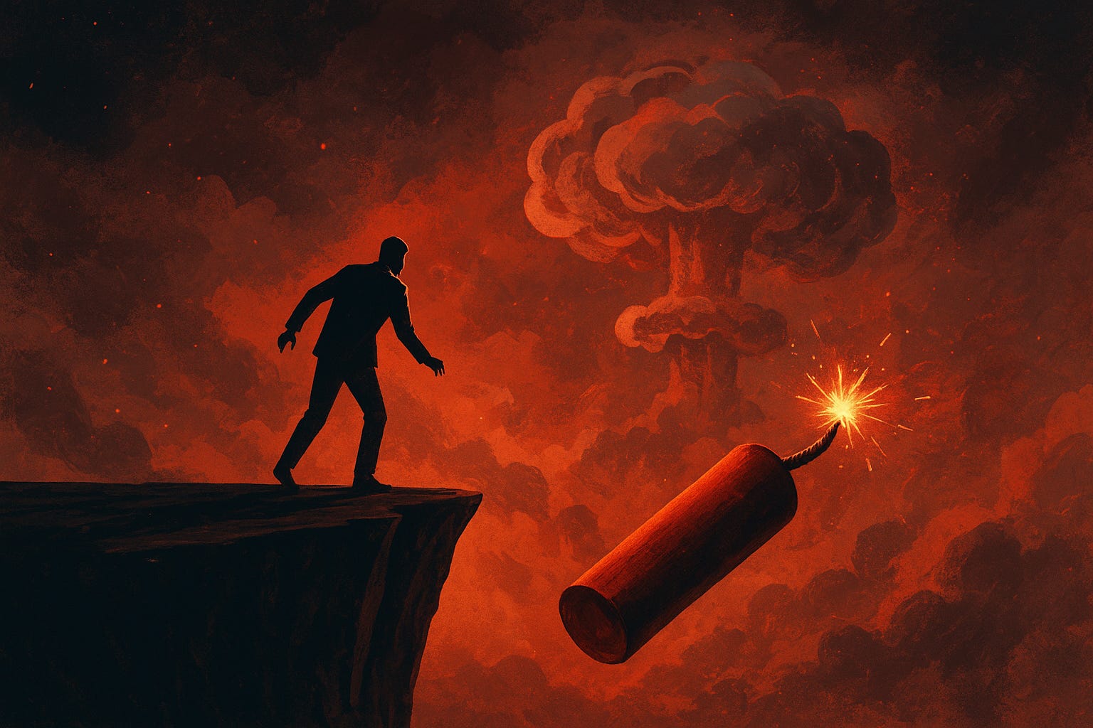 لكن، من يضمن أن لعبة الحافة ستظل لعبةً فقط؟ إنّها قد تتحول في لحظةٍ واحدة إلى سقوطٍ في الهاوية، سقوطٍ لا غالب فيه ولا مغلوب، بل خراب يبتلع الجميع.